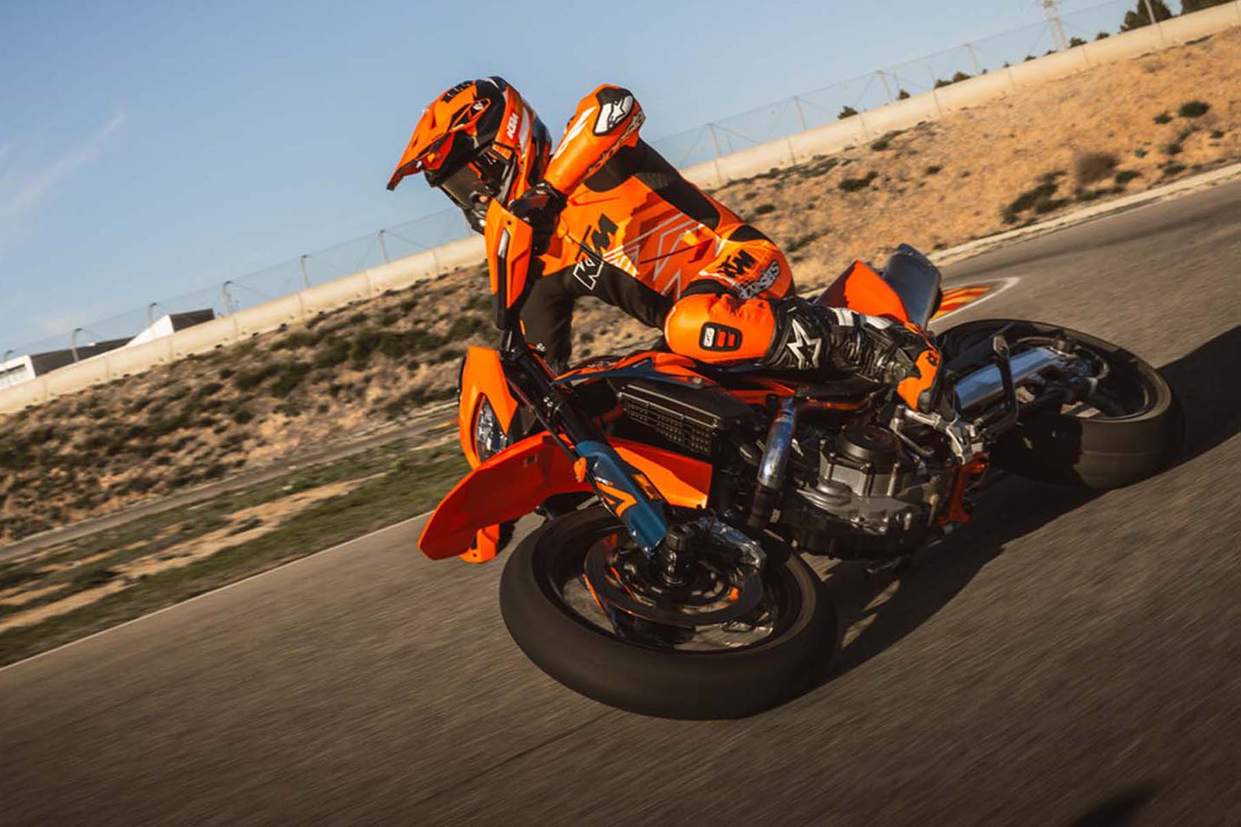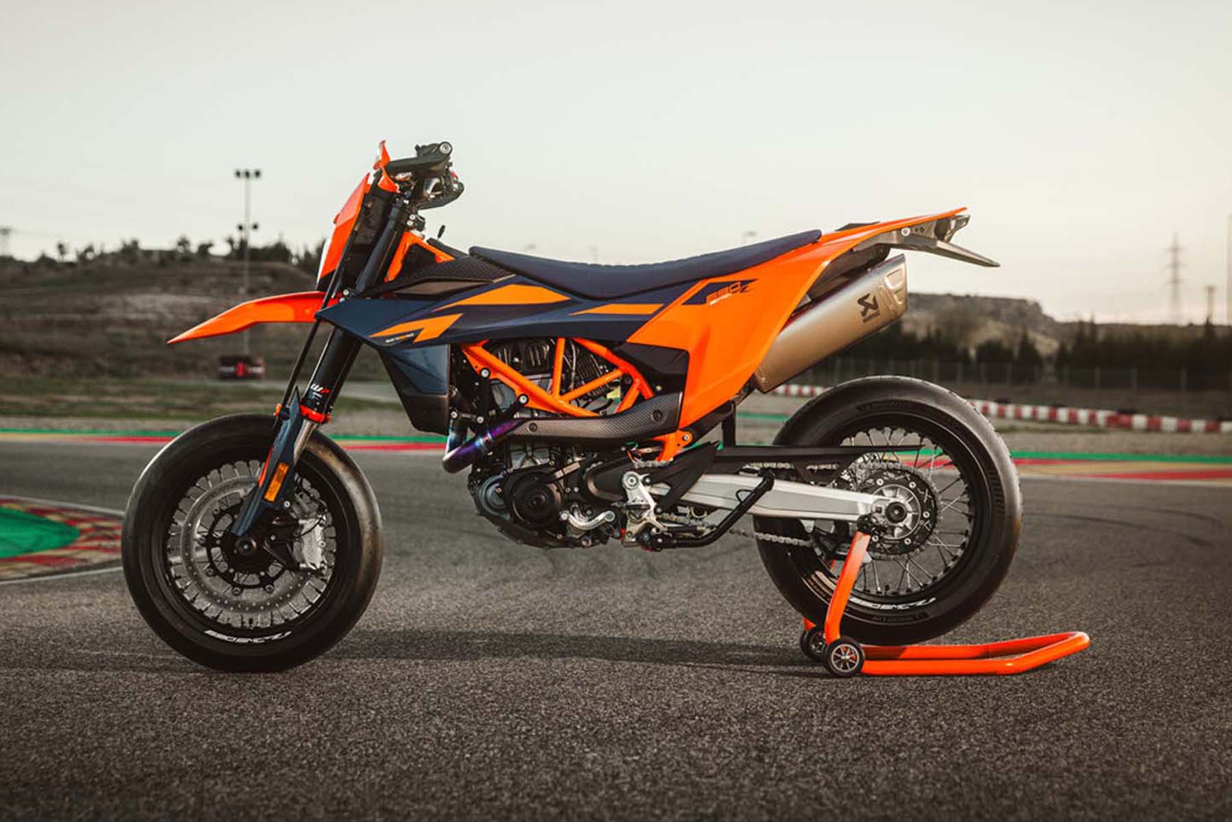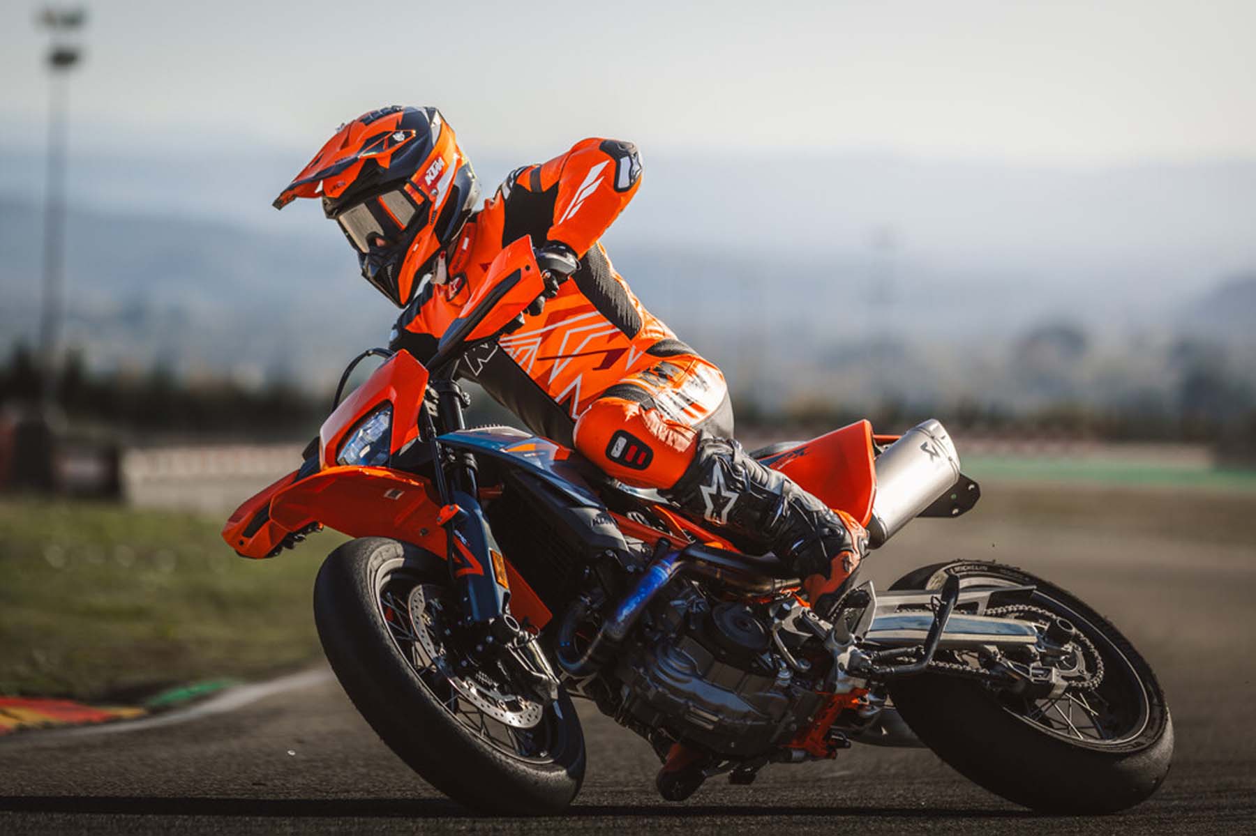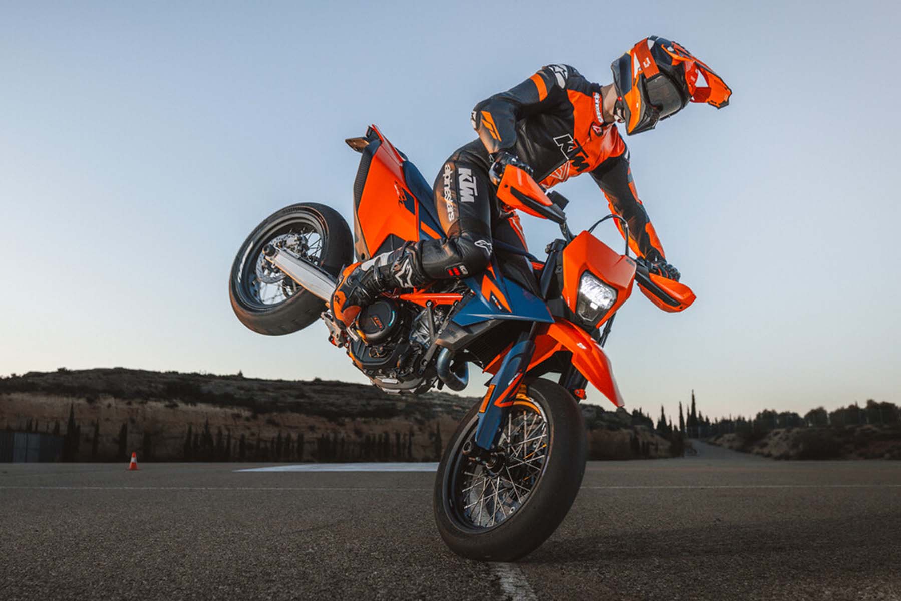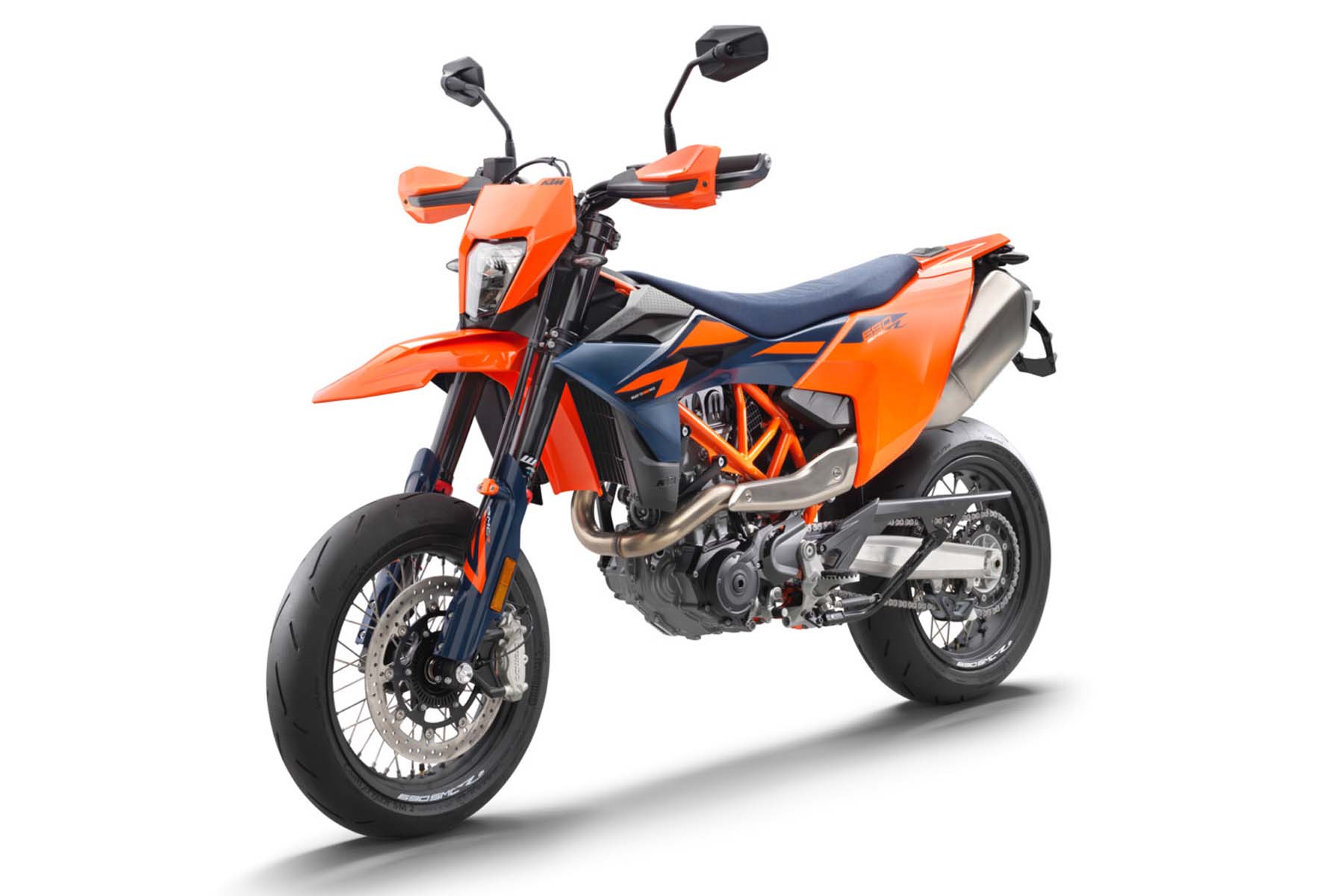 Ihre sportlichere und driftfreudigere Schwester, die 690 SMC R , verfügt über das gleiche technische Paket, ist jedoch mit einem für aggressives Fahren auf der Straße optimierten Fahrwerk ausgestattet. Dank der 6D-Trägheitsplattform bietet sie spezielle Fahrmodi sowie Supermoto- und Supermoto+ -ABS-Funktionen – ideal für alle, die maximale Kontrolle beim Schräglagenverhalten und Bremsen wünschen. Beide Modelle sind mit KTMConnect-Konnektivität ausgestattet und können mit dem umfangreichen Sortiment an PowerParts- Zubehör und PowerWear- Bekleidung individuell angepasst werden .
