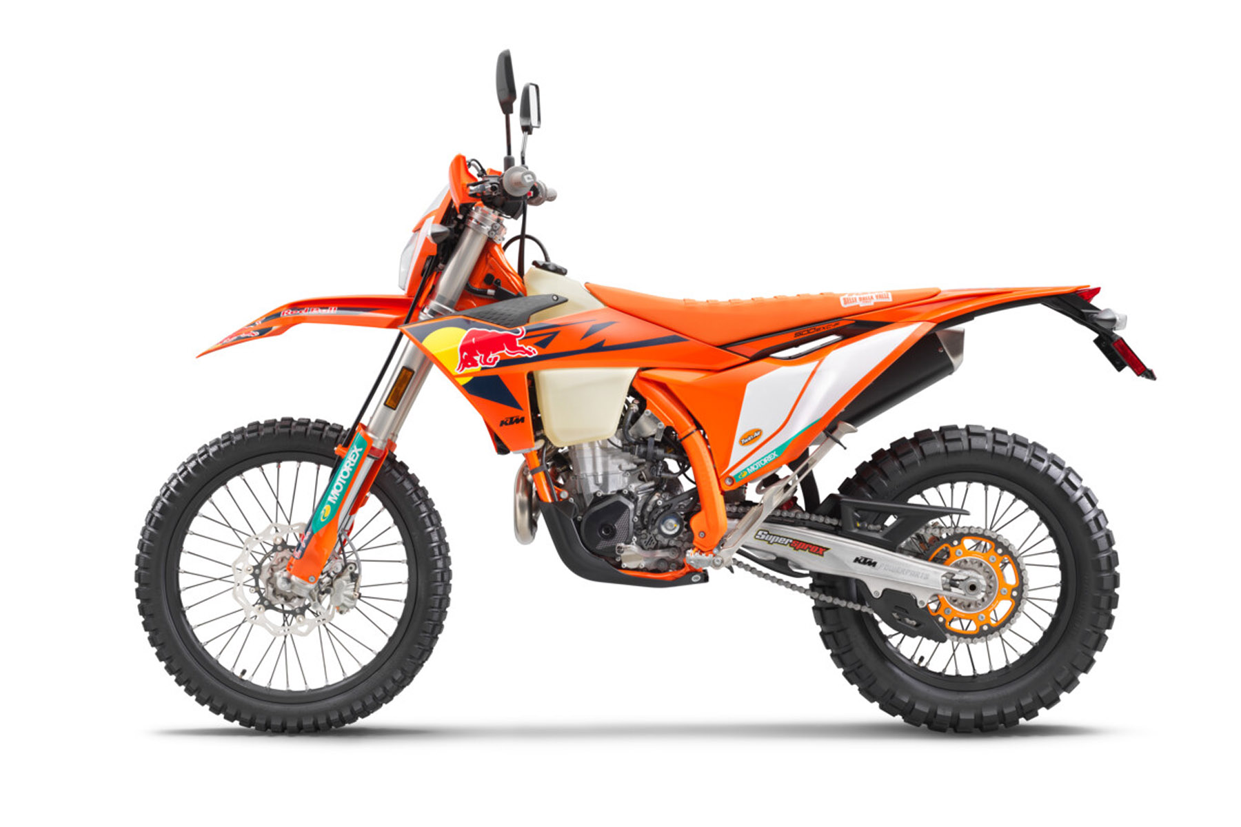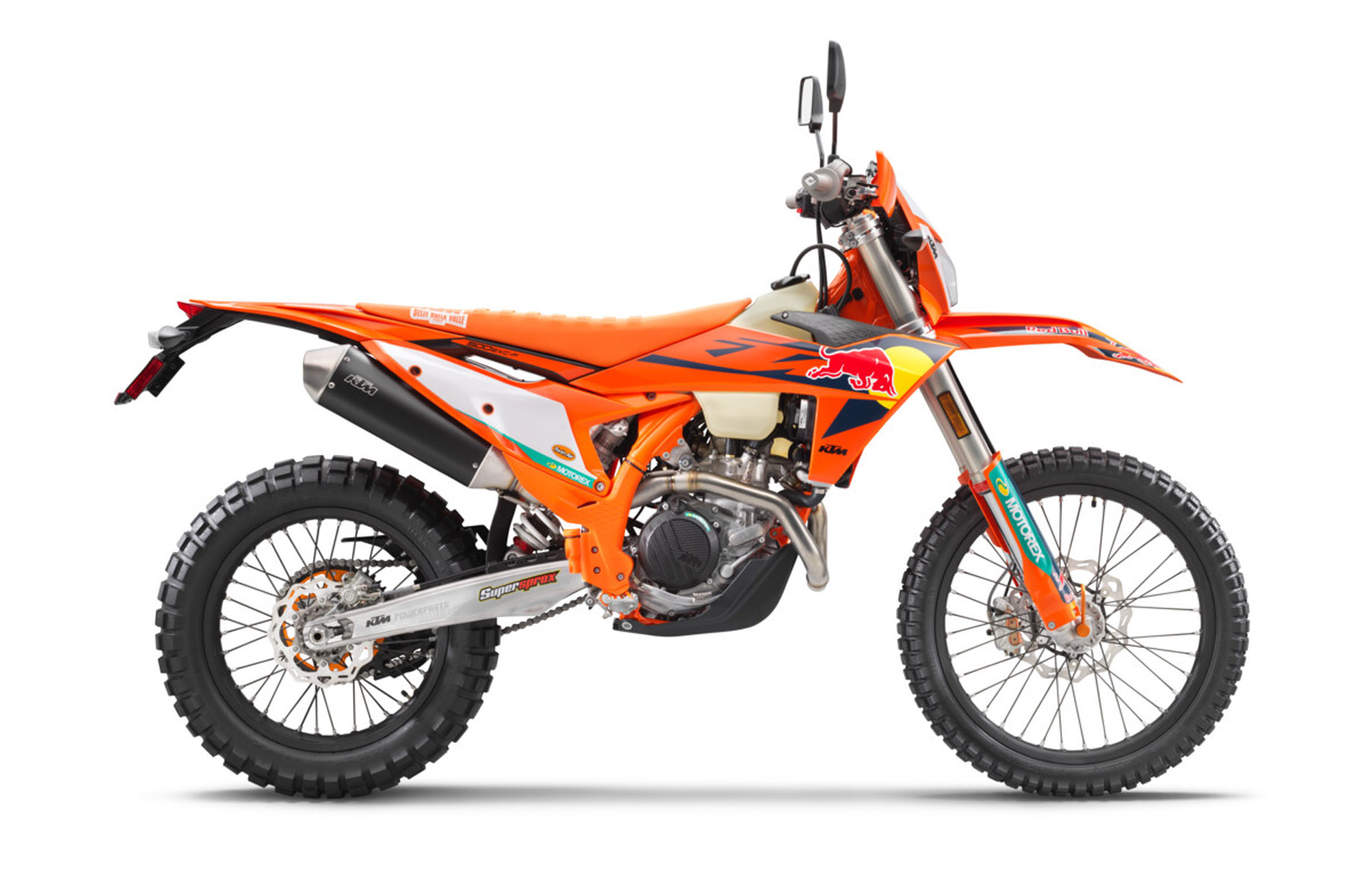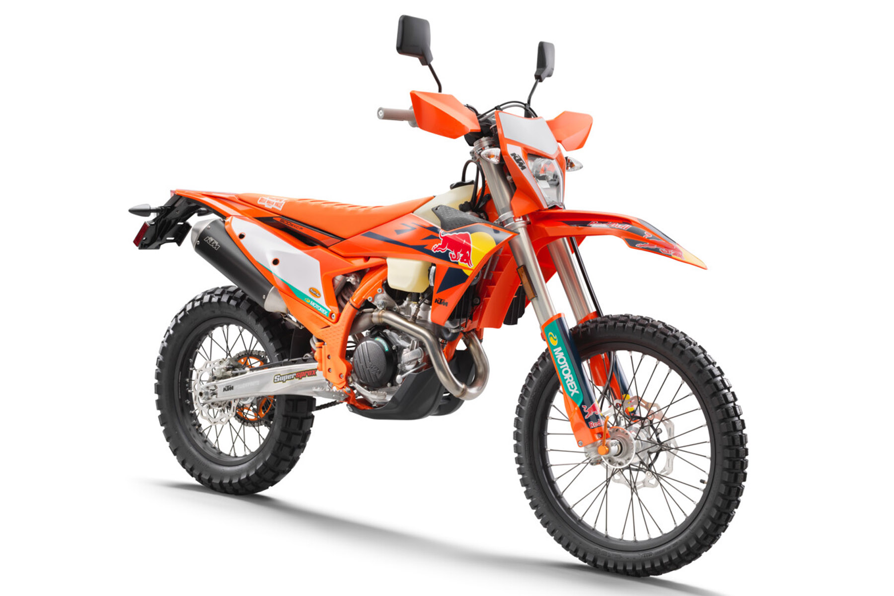 Die KTM EXC CHAMPIONS EDITION unterscheidet sich vom Rest der KTM Enduro-Reihe durch ein RED BULL KTM FACTORY RACING-Grafikkit, das ihren Platz zwischen der Standard-Reihe KTM EXC und KTM EXC SIX DAYS einnehmen soll.